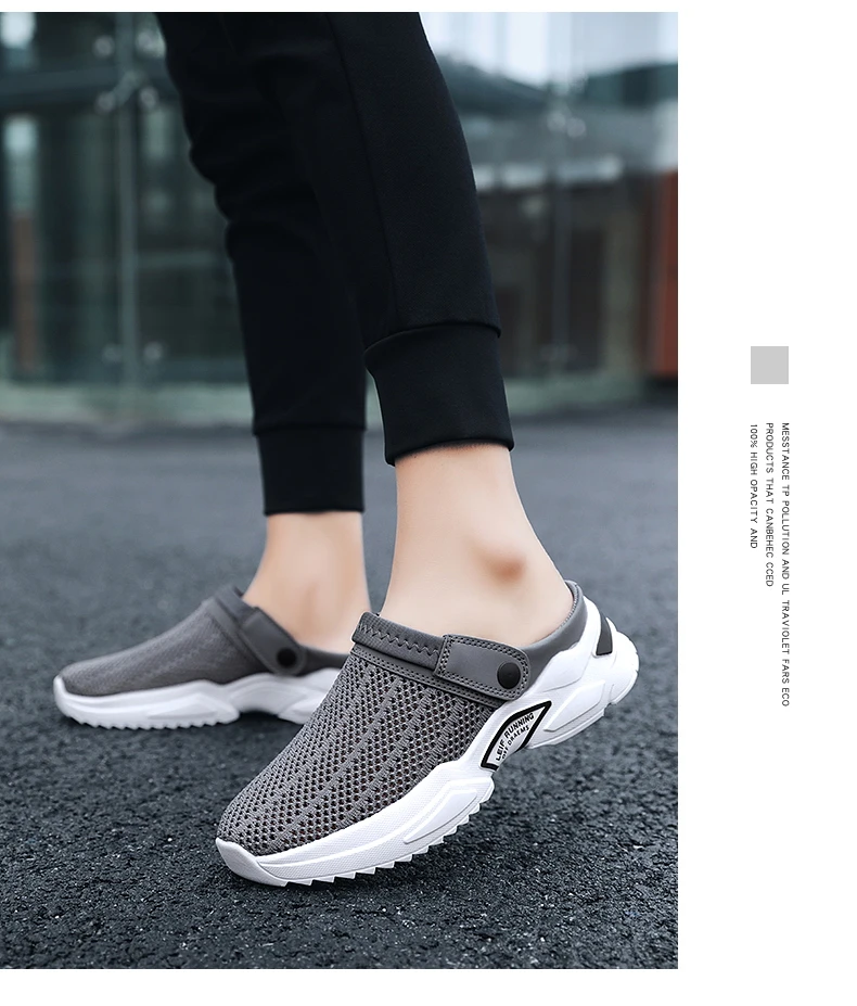 2022 Men Summer Sandal Mesh Mules Breathable Padded Beach Flip Flops Shoes Solid Flat Bath Slippers Outside Men Slippers Zapatos
