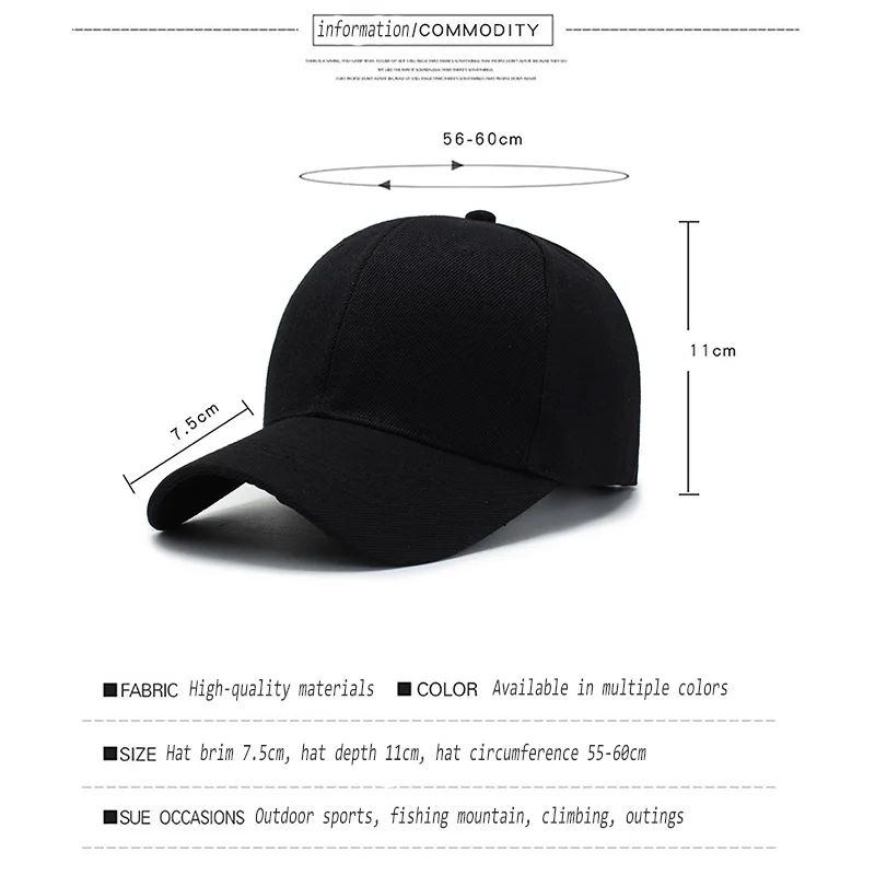 Black Cap Solid Color Baseball Cap Snapback Caps Casquette Hats Fitted Casual Gorras Hip Hop Dad Hats Men Women Unisex